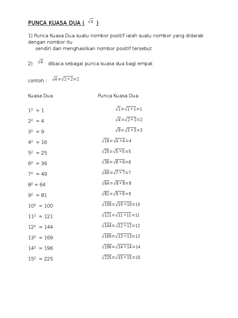 Setiap nombor nyata bukan negatif mempunyai satu punca kuasa dua bukan negatif yang dipanggil punca kuasa dua utama dan mempunayi simbol. B Nombor dalam bentuk piawai. 10 30 03.